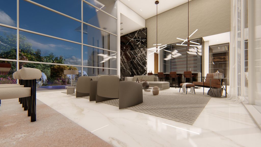 Experience the epitome of luxurious open-concept living with Villa Dusk. Featuring an elegant aesthetic highlighted by towering windows and soaring ceilings, this exceptional estate offers an abundance of remarkable spaces. Inside, you’ll discover a formal dining area, a bar lounge with a grand wine cellar, and multiple inviting living rooms, all seamlessly flowing together. But the true centerpiece lies outdoors, where a dazzling pool is wrapped by a large patio and an expansive outdoor kitchen, creating the perfect space to entertain or unwind in the sunshine.